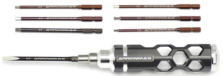 ArrowMax AM-460004 Werkzeug-Set 1 Schlitzeinsatz Größe: 3,5, 4 Aussensechskant-Einsätze Größe: 1.5, 2, 2.5, 3, 2 Kugel-A