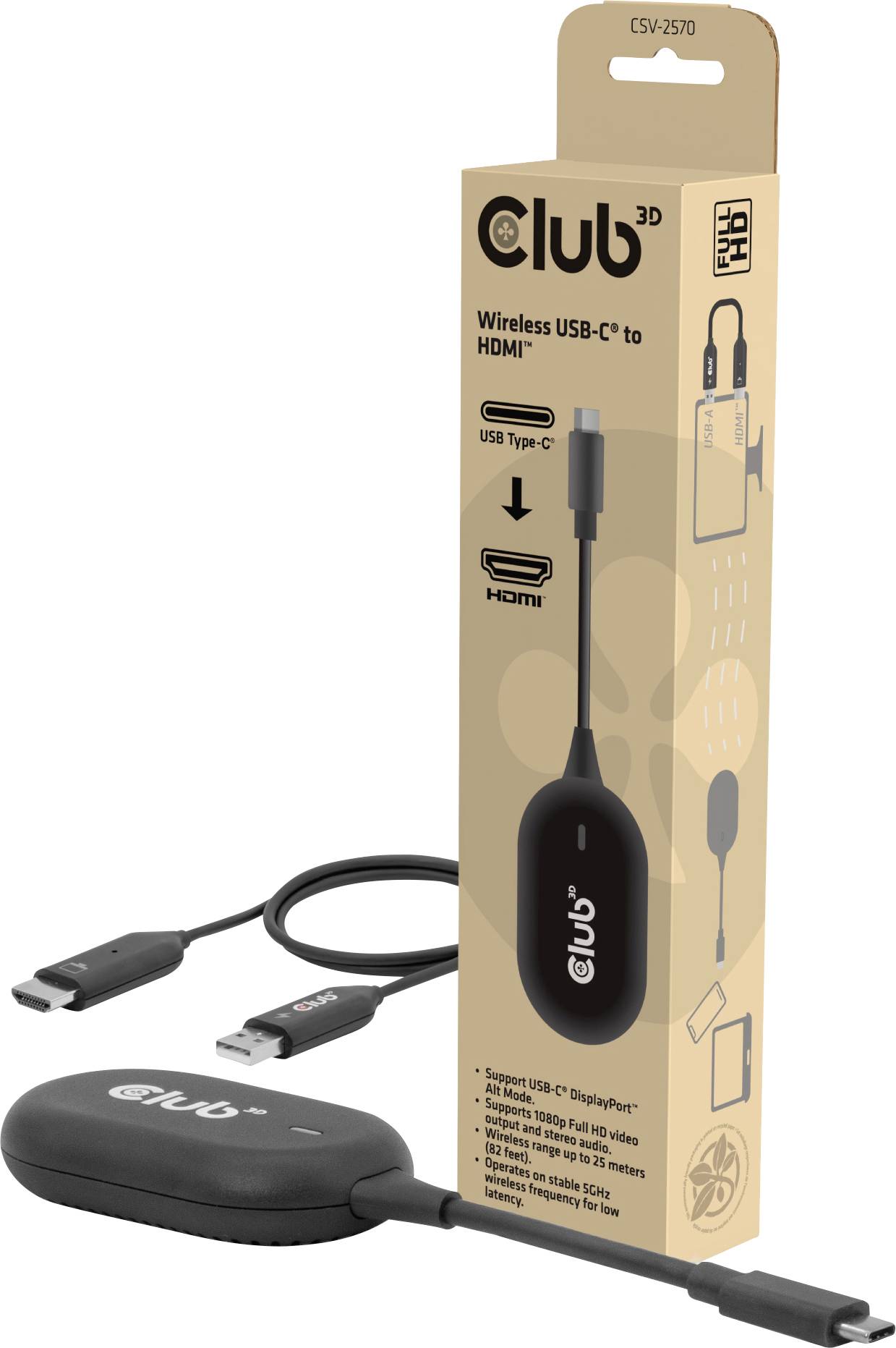 club3D HDMI / USB-C® Anschlusskabel CSV-2570 USB-C® Kabel wireless
