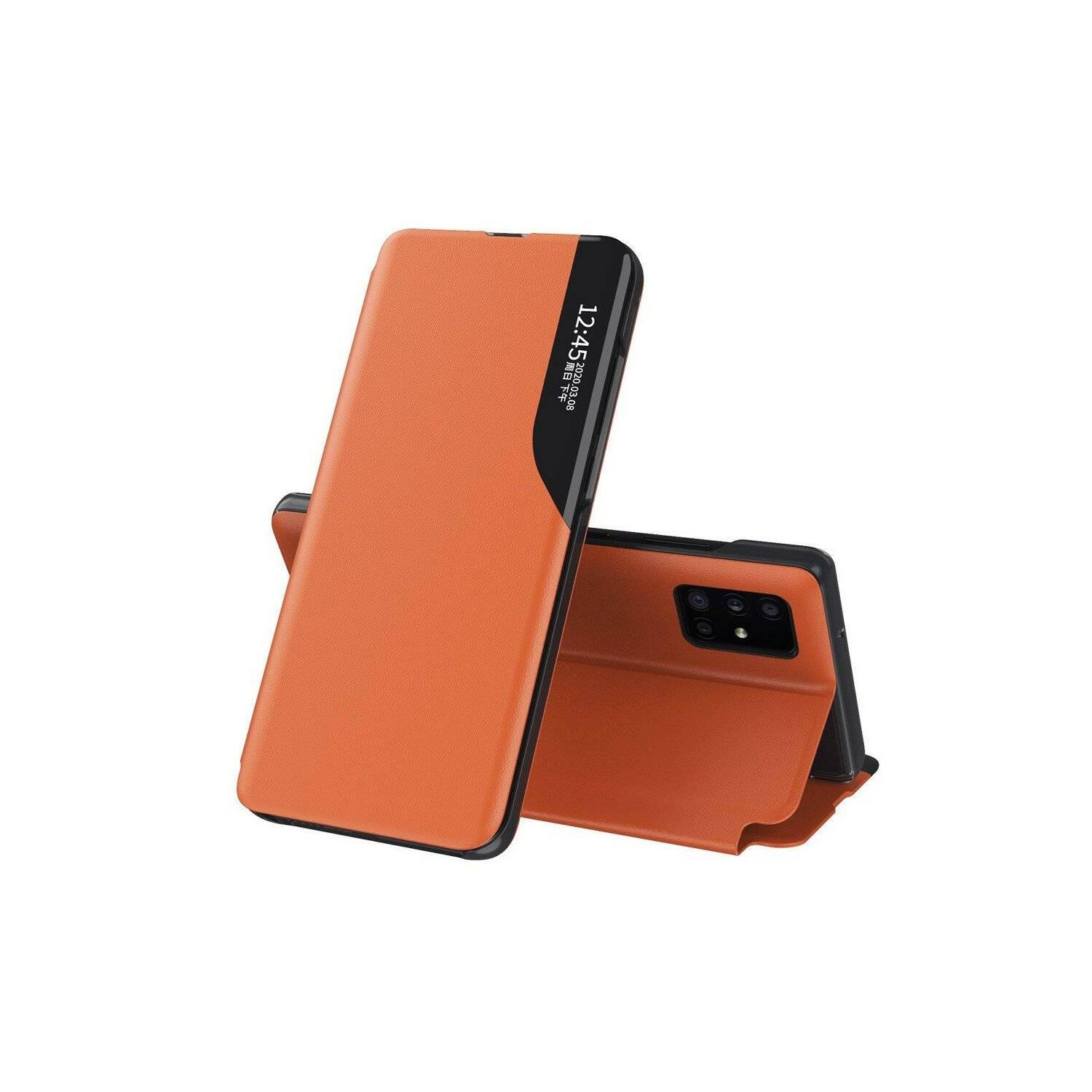 Eco Leather View Case Buch Tasche Leder aufklappbare Hülle Standfunktion für Samsung Galaxy S22 Ultra (SM-908B) Orange