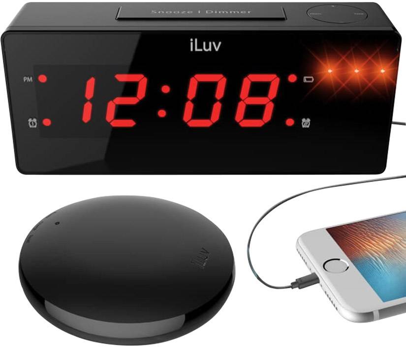 iLuv TSBOOMULBK Elektronik Wecker Schwarz Alarmzeiten 2 Extra lauter Weckton, Großes Display, USB Anschluss