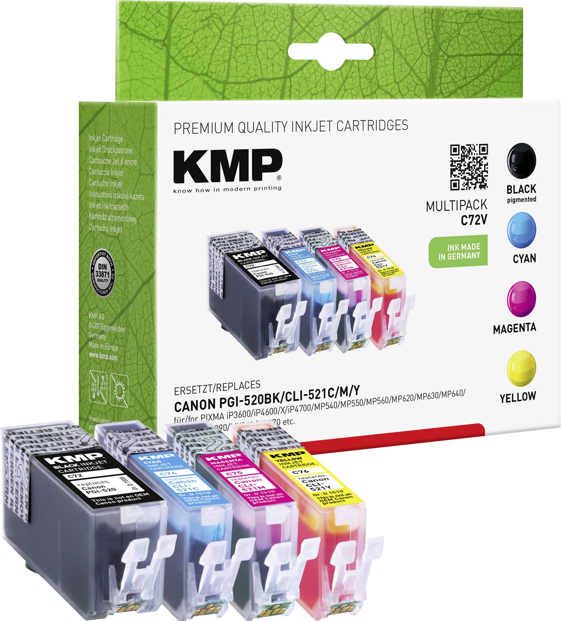 KMP Druckerpatrone ersetzt Canon PGI-520PGBK, CLI-521C, CLI-521M, CLI-521Y Kompatibel Kombi-Pack Schwarz, Cyan, Magenta,