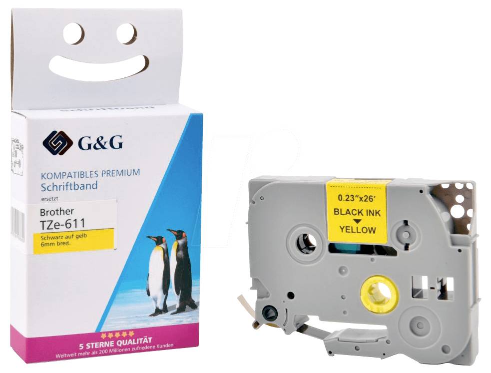 Kompatibel mit Brother TZe-611 Schriftband (6mm/8m, laminiert) Schwarz auf Gelb - Marke: G&G