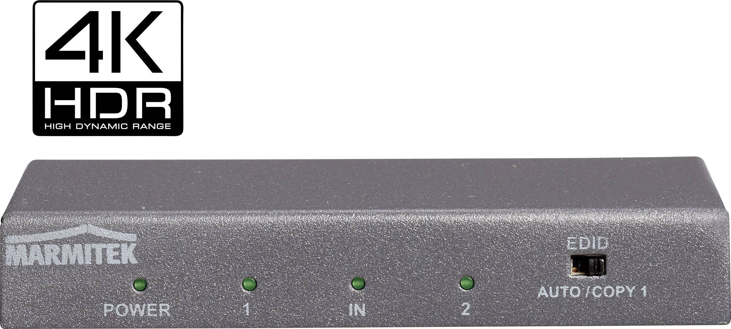Marmitek Split 612 UHD 2.0 2 Port HDMI-Splitter 3D-Wiedergabe möglich, Metallgehäuse, Ultra HD-fähig, mit eingebautem Re