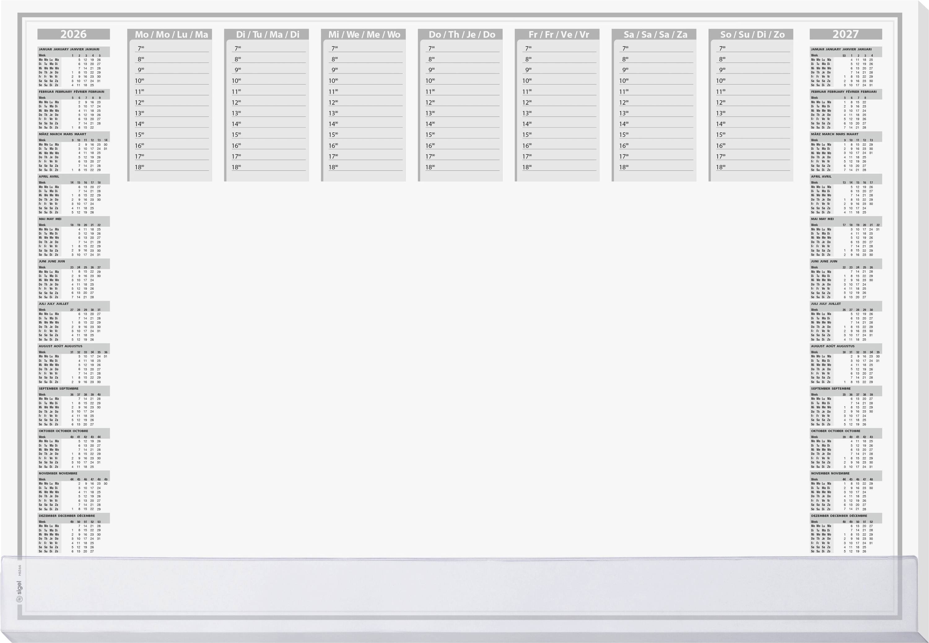 Sigel H6366 Schreibunterlage Papier Wochenplan mit Schutzklappe (B x H) 59.50 cm x 41 cm 2026, 2027 40 Blatt