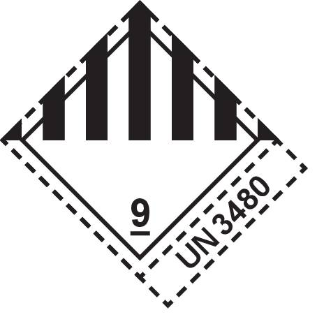 - HG – „Achtung: Gefahrgutklasse 9 UN 3480, UN 3481, 3090 bzw. 3091.